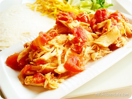 *Note: leaving the tomatoes undrained makes for a fairly juicy chicken mixture. If you don’t want the finished shredded chicken mixture to be quite as liquidy, slightly drain the tomatoes before using them. Also, I nearly always double or triple this recipe because it freezes so well.